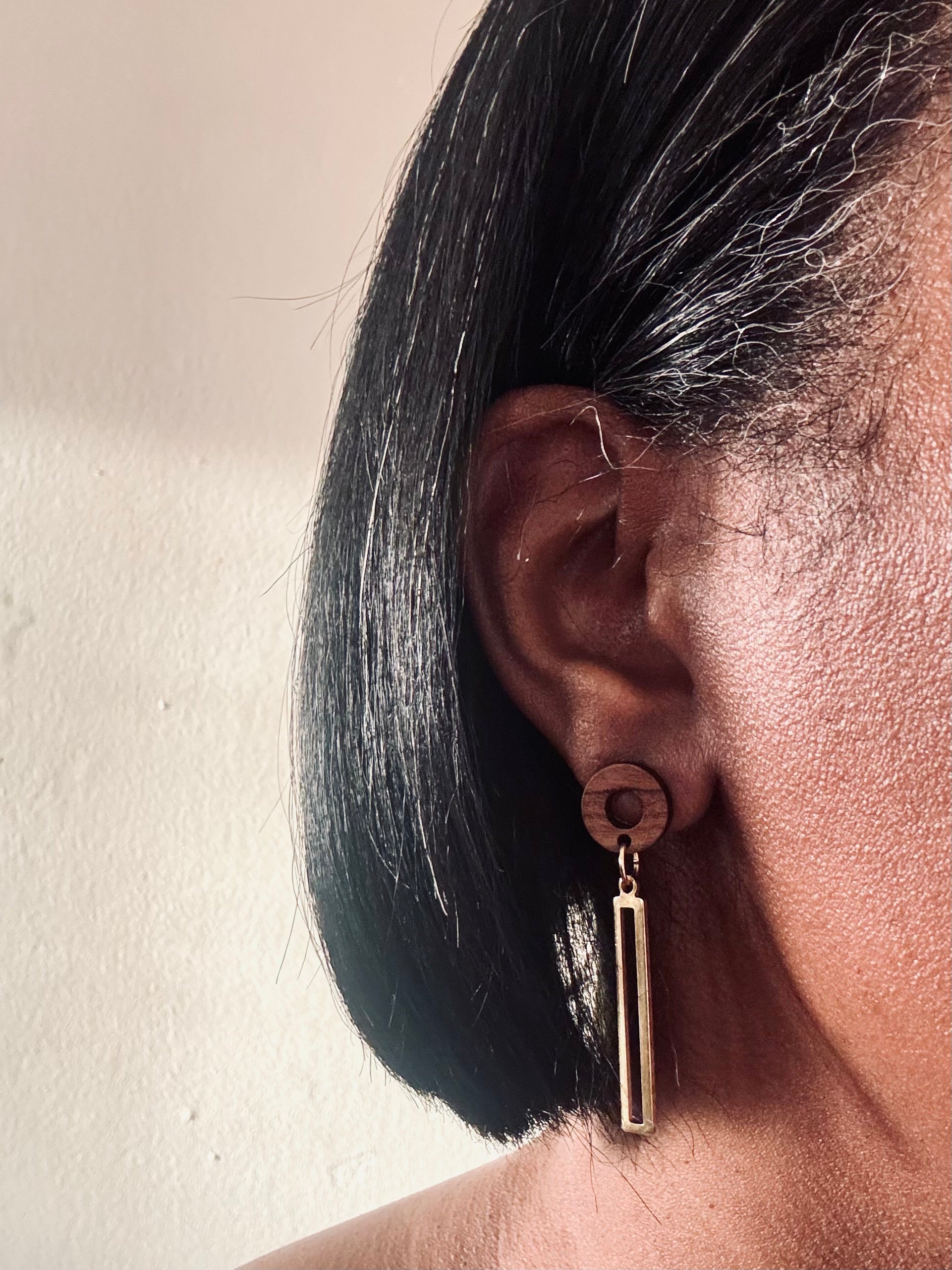 a wood ring paired with a slim brass bar. simple movement, clean contrast, quietly graphic.